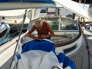 Geachte redactie mailasail, Hierbij mijn verslag van het zeezeilen op de Ionische Zee met de ‘Bahia’. Van de schipper Bert van Bruggen heb ik het verzoek gekregen dit als mail te sturen naar uw adres en niet als MS-Word-document, zodat MS-Office niet nodig is. Wilt u het verslag nogmaals plaatsen. Met vriendelijke groeten, Hans Kooij Zeezeilen op de Ionische Zee Augustus 2012 Na 33 jaar werken op het land ben ik ingegaan op de uitnodiging van mijn buurman Bert. Als landmacht militair heb je bij voorkeur grond onder je voeten en daarom worden we wel ‘zandhazen’ genoemd. Marine personeel worden ‘vissers’ genoemd en hebben een voorkeur voor water. Voor de 1e keer van mijn leven zeezeilen. Mijn enige ervaring is mijn 40 jaar oude 23 voet flevo-schouw met drie schoten en een twee vallen. Het schip van mijn buurman ‘de Bahia’ is wat anders. Een 14 meter lang jacht met twee masten. Mijn zeilcursus was 30 jaar geleden en ik wist dus niet altijd wat er werd bedoeld als ik moest opschieten, het achterlijk moest aanspannen of het grootzeil moest inscheren. Maar het was een bijzonder plezierige en leerzame ervaring. De Bahia is een 30 jaar oud schip maar zeilt nog menig modern jacht eruit, onder meer door beter te zeilen. En elke dag op het water hebben we gezeild. Mijn talrijke fouten werden met de dag iets minder en ik kreeg er steeds meer plezier in. De zeiltocht ging van Preveza via het kanaal van Levkas naar het zuiden. De pontonbrug is een prachtig kunstwerk die elk uur open gaat voor de scheepvaart. In het kanaal heb ik ervaren hoe belangrijk de markeringen zijn. Ik begreep de stuurboordmarkering niet en vroeg te laat aan de schipper hoe het nou zat. Niet mijn eerste en ook niet de laatste fout. Daarna prachtig gezeild naar een baai van Meganisi. De baai is een oase van rust waar je heerlijk kan zwemmen en met twee restaurants op de wal. Het dorpje is 20 minuten lopen, waar je tot mijn verbazing gewoon de Telegraaf kan kopen. Vervolgens naar Vasiliki gezeild, waar ik de procedure ‘ankeren’ voor de 2e keer mocht beoefenen, inclusief het controleren van het anker op 3 meter diepte. In Vasiliki bleek dat de gearbox defect was. De 30 jaar oude Perkins motor moest worden gerepareerd en de gearbox moest uit Spanje komen. Voor mij de gelegenheid om wat eilanden te bekijken. Na reparatie naar Poros op Kefalonië gezeild. De wind werd steeds harder en bij mij ging het adrenaline gehalte per knoop omhoog. Vooral als je 9 knopen vaart en er windvlagen zijn van 35 knopen. In mijn gedachten nam ik de procedure ‘man over boord’ nog eens helemaal door. Vooral het markeren van de positie op het navigatie apparaat moest ik in ieder geval niet vergeten. Hoog aan de wind ging het wel erg scheef naar mijn idee en ik riep luid: ‘Bert, gaat dit wel goed?’ Vervolgens zie je dat de schipper even naar de zeilen kijkt, de genua wat aantrekt, de instrumenten controleert, de koers wat bij regelt en vervolgens rustig een sigaret opsteekt om daarna wat aantekeningen te maken in het logboek. De rust die schipper Bert uitstraalde overtuigde mij dat het dus wel goed ging. In de haven van Poros voor de 1e keer met de kont naar de kade afgemeerd. Dat ging niet helemaal zoals het hoort en moest dus even worden geëvalueerd. Eerst beide landvasten vastmaken en dan pas weer naar het anker lopen. Dat vergeet ik dus nooit meer. In Poros moest de genua worden gerepareerd, omdat door de harde wind en het klapperen van het zeil het stiksel over meer dan een meter had losgelaten. Het repareren is een saaie klus maar werd vakkundig uitgevoerd door de schipper. Voor mij de gelegenheid om de boot van binnen weer eens grondig te reinigen. Met meer dan 35 graden Celsius is dat niet leuk, maar het bier smaakt daarna bijzonder goed. Na de reparatiedag in Poros naar Vathi op Ithaca gezeild, om vervolgens weer via Meganisi en Levkas naar Preveza te zeilen. Het is een unieke ervaring geweest om met een zeer ervaren zeezeiler de Ionische Zee te bevaren. Ik bedank schipper Bert voor zijn tomeloze geduld, zijn wijze lessen en zijn kameraadschap. Ik wens hem nog een behouden vaart. Hans |