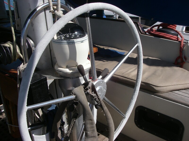Als eerste ben ik begonnen om een nieuwe ankerlier te bestellen. Daarna begonnen het leer van het stuurwiel te vervangen. Datmoet je niet in 1 dag doen, want het is een precies werk en je hebt geduld nodig. Vrijdag was het klaar. Zie foto. Op de spaak hangt het oude leer.