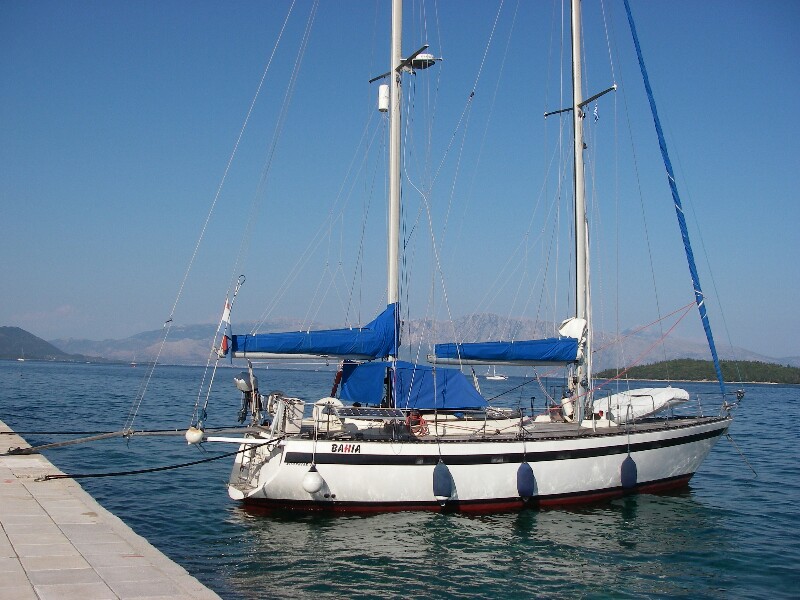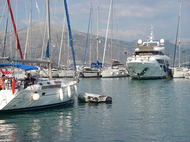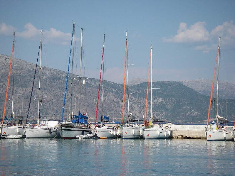 Iets ten oorden van Nidri op Levkas hadden we al vaak een kade gezien, waar zeilboten afgemeerd lagen, en die plek wilden we eens verkennen.