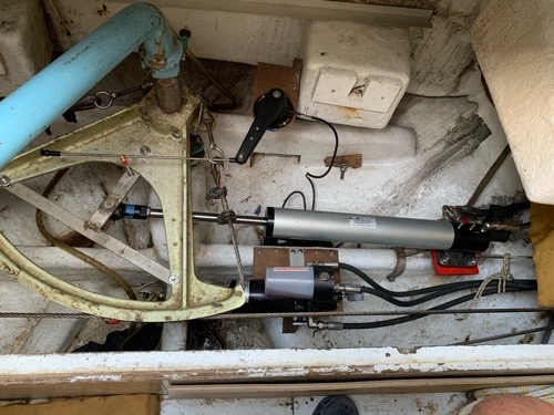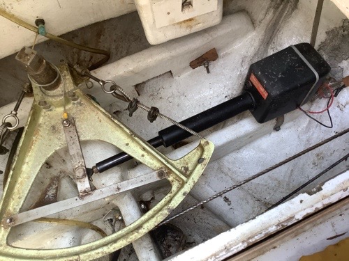 De cilinder van de stuurautomaat toen voorzien van een tijdelijke voeding en de bediening ook kort gesloten zodat ik de cilinder handmatig kon bedienen..