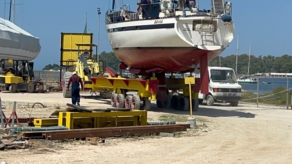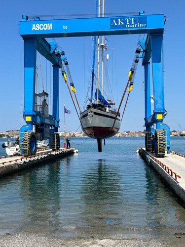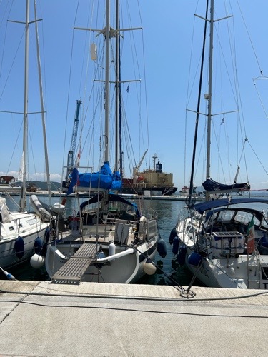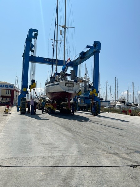 Op 19 mei om 12:00 lag BAHIA in het zilte nat. Naar de kade van Preveza gevaren, en daar single-handed afgemeerd met kont naar kade.