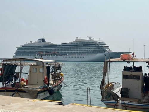 De volgende ochtend lag het volgende cruise schip al aan de kade, Later kwam daar nog een groot zeilschip bij. Allemaal om de ruïnes van Olympia te bezoeken: de originele plaats van de Olympisch spelen.