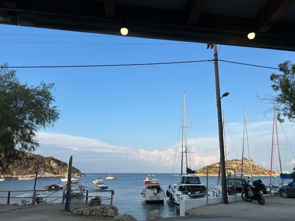 Aankomst in Vathi om 15:15. Er was een sterke zijwind en hebben 2 keer moeten ankeren, maar om 15:20 lagen we aan de kade.