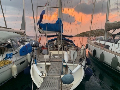 Om 20:45 werden we verrast door een fikse onweersbui met veel regen en oostenwind, wat in Nikolaos voor veel deining aan de kade zorgt. We hebben de loopplank wat extra hoog opgebonden, maar de volgende dag vertelde de buurman de loopplank toch nog op de kade sloeg en hij had hem nog hoger vastgemaakt.