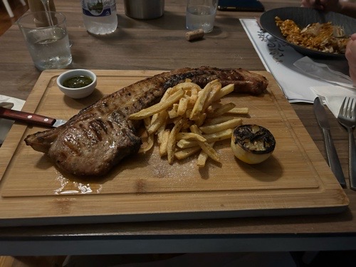 Beide avonden hebben we daar gegeten. De eerste avond hebben we wat kleins te eten besteld, maar de tweede avond dacht ik de varkens karbonade wel aan te kunnen. Niet dus: veel te groot, maar wel lekker.