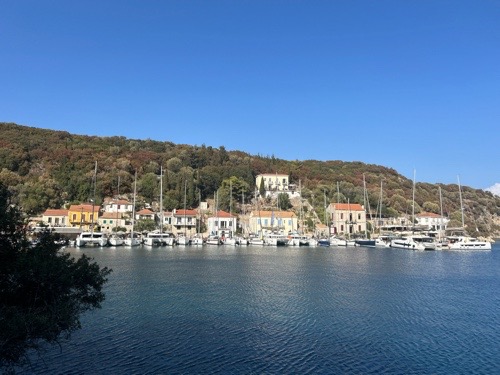 Het zeilplan voorziet twee nachten in Kioni. Dat is een uurtje varen van Vathi, maar je moet vroeg binnen zijn want de kade ligt al snel vol.