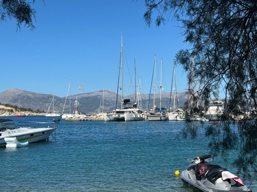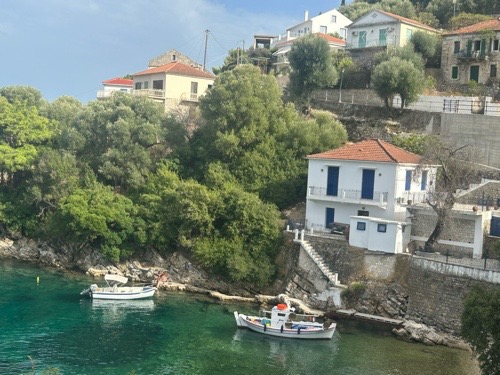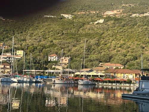 Het is een kleine 15 mijl, en geprobeerd te zeilen maar de wind was erg wispelturig zowel in richting als sterkte. Om 15:00 hielden we het voor gezien en zijn we naar Kalamos gemotord. Om 15:50 had George ons aan de kade gebonden.