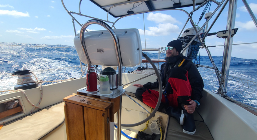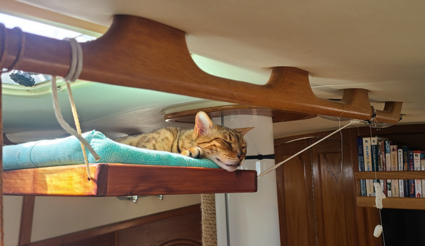 Date: Thursday 1/05/25 - Time: 10:00 DST Position 35:13.67N 70:57.00W COG 132T SOG 5.5kt, Wind 250T 13 kt, Temperatures: Air 25 C, Sea 20.2 C Barometer: 1024 hPa - steady Sailed distance since departure: 300 NM Last 24h Sailed Distance: 144 NM Last 24h Decrease Distance on rhumb line: 133 NM Time since departure: 1d 19h 00m Average Speed since departure: 6.98 kt Average VMG since departure: 6.34 kt Average VMG speed last 24h: --- kt Intention: sail to St. George Bemuda Distance to End on rhumb line: 356 NM ETA : Wednesday May 5, @ 16:00 Detailed Track: https://share.garmin.com/svBlueNote We left Norfolk after getting fuel and water at marina at about 2pm with ebb current to the Chesapeake. A SSW wind at 20-25 kts took us in less than 24 hours to the golf stream where wind increased to about 25-30 kts. This morning wind decreased and we put up the mainsail. Soon conditions are good for putting lure in the water and starting fishing. ![]() Namiru relaxing on his "floating bed" as we leave Norfolk in calm water and wind. ![]() A relaxed Andrea as we are about to exit the Chesapeake Andrea in full fault weather gear as we are crossing the Gulf
