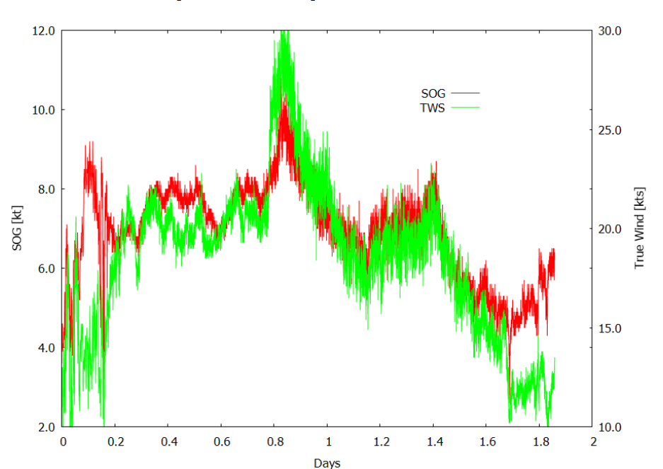 Stream Sailed from Norfolk with only staysail and partially furled jib. At about 1.7 days we put full mainsail up. |