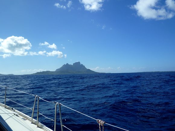We sailed the short distance from Tahaa with Bora Bora's famous peak always