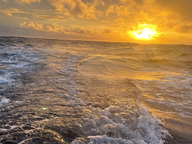 pos: 07:45.914 S 103:28.536 W (entre Galapagos et Marquises) 15.04.23 Les premiers quarts de nuits ont été difficiles car la direction du vent n’était pas régulière et il fallait toujours adapter le cap ou régler les voiles. Tout devient normal dès 02h00 du matin. La journée se passe sans difficultés. Nous avons toujours une bonne position dans le classement général de l’ARC mais tout peut changer très rapidement. Cap au 235 avec un vent du SSE de 10-15 Nd notre position est de 7.12,7S 099.51W. Nous avons mis une ligne avec un rappala et espérons pêcher quelque chose ; pour l’instant rien … 16.04.23 Les quarts de nuit se sont bien déroulés. La nuit sous la voie lactée a été magique. Denis a vu quelques étoiles filantes traverser le ciel. Depuis le début de cette étape c’est Henri-Pierre qui s’occupe de la radio SSB et fait le lien entre Brainwave et les autres bateaux de l’ARC. Lors de notre traversée de l’Atlantique en 2021, c’était Mario Colpa qui l’avait fait et il avait été même plusieurs fois Duty Net Controller. Lors de ce contact radio, il faut donner notre position, notre cap, l’état de la mer et de l’équipage et si on a pêché quelque chose. Tous les deux jours nous recevons via mail la situation météo du jour et des 36 prochaines heures. Fastidieux à déchiffrer mais Henri-Pierre le fait très bien. À la suite de la prévision météo Daniel, notre routeur va dans le programme Windy et nous propose une route à suivre pour la journée. Il propose également la voilure à mettre en place. À la suite de notre briefing et selon la météo, nous décidons de mettre en place le spy asymétrique. Grand largue et 15 Nd de vent. Nous mettons tout à poste mais après quelques minutes le vent forcit, devient irrégulier. La voile est difficile à tenir et risque de se déchirer (comme cela avait été le cas lors de la traversée, Canaries - Cap Verde). Nous décidons de l’enlever à juste titre. HORREUR, lors de la manœuvre nous remarquons qu’une des vis du VIT MULET (pièce qui tient la bôme au mât) c’est dévissé et se trouve sur le pont. Situation de crise ; il faut agir vite car avec les vagues et les vibrations, l’axe du Vit Mulet peut s’enlever et la bôme se désolidariser du mât et peut tomber sur le pont, occasionnant de gros dégâts ! Et comment remettre tout ceci en place 😩 après ! Nous agissons consciencieusement et rapidement. Marteau, clefs imbus et dextérité nous pouvons tout réparer en quelques minutes. Encore une fois nous avons eu chaud ! (Le lendemain nous collons la vis avec du LOCTIT 243) Nous finissons de ranger le spy asymétrique puis comme le vent a changé de direction et vient de derrière, nous décidons de nous mettre en papillon tangonné avec génois et foc. Nous descendons la GV et mettons en place les tangons et le cordage pour notre papillon ! 45 minutes de travail en plein soleil. Il faut être méticuleux afin de ne pas se mélanger les pinceaux avec les cordes. Le résultat est concluant pour 20 minutes .., puis le vent changea et il fallait faire du 295 degrés afin de garder les voiles pleines ce qui nous éloignait de notre route. Quelques minutes après nous décidons d’arrêter les frais et de nous remettre comme avant (GV et génois). Durant cette journée nous avons testé deux allures, évité de perdre la bôme mais malheureusement bien ralenti notre vitesse. Le soir venu nous n’osions pas aller sur YBracing voir notre position par rapport aux concurrents. OUF, nous avons perdu quelques milles par rapport à A PLUS 2 et KALLY Mais sommes toujours en bonne position. Pour le souper, Denis nous prépare un bon petit repas : décongèle une ratatouille avec du riz et viande hachée. Un régal ! Avant de faire mon quart, je charge mon natel, élément indispensable à mes yeux ! Il ne se charge plus; l’humidité de plus de 80 % qui nous entoure est l’ennemi no 1 des appareils électroniques.., comment vais-je faire sans lui 😩 ? Sur conseil de Blaise je le mets dans une boîte avec un kilo de riz afin d’enlever l’humidité … mais le lendemain toujours rien. Je nettoie les contacts avec du WD 40 (spray lubrifiant) et c’est reparti pour un tour ! 😉. Donc si vous remarquez qu’il n’y a plus de contact entre vous et moi, c’est seulement que j’ai un problème technique 😂 avec mon natel. |