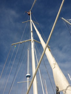 Crew change - Tricia and Richard Morris joined the Carango crew on 5th January An intensive training period followed before some final preparations before the off. Skipper up the stick Team Photo |