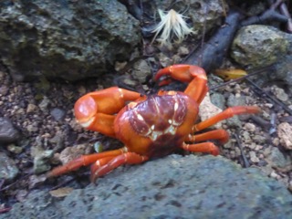 The island is populated by about 1,200 people - White Australians, Malays, Chinese and various other Asian types. The Chinese being the most populous. The Island is about 10 miles by 8 miles in the shape of a scottie dog. It is a volcano which we were told erupted about 60 million years ago [young by geological standards] and then later sank below the surface - coral formed and grew and decayed back to limestone. The surface of the island is now limestone, phosphates [phosphate mining is the largest employer on the island], basalt, pumice nd a rather thin layer of soil from rotting vegetation with tropical rain forest. It seems they get about 2.6 meters of rainfall a year - sadly the most of this years ration fell during our visit. Never have we been so thoroughly wetted! Carango was escorted into the island shelter mooring by the Royal Australian Navy, with an impressive turn of speed and a sharp turn which impressed us and burned quantities of diesel for the Australian tax-payer. ![]() The Island is unique for it millions of Red Crabs which when in annual migration stop all traffic as they cross roads. Some special underpasses have been built for these crabs but the roads stop for crabs. ![]() ![]() ![]() ![]() |
