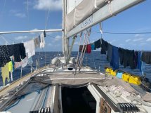 others rigging washing lines on the foredeck and we all set to scrubbing,