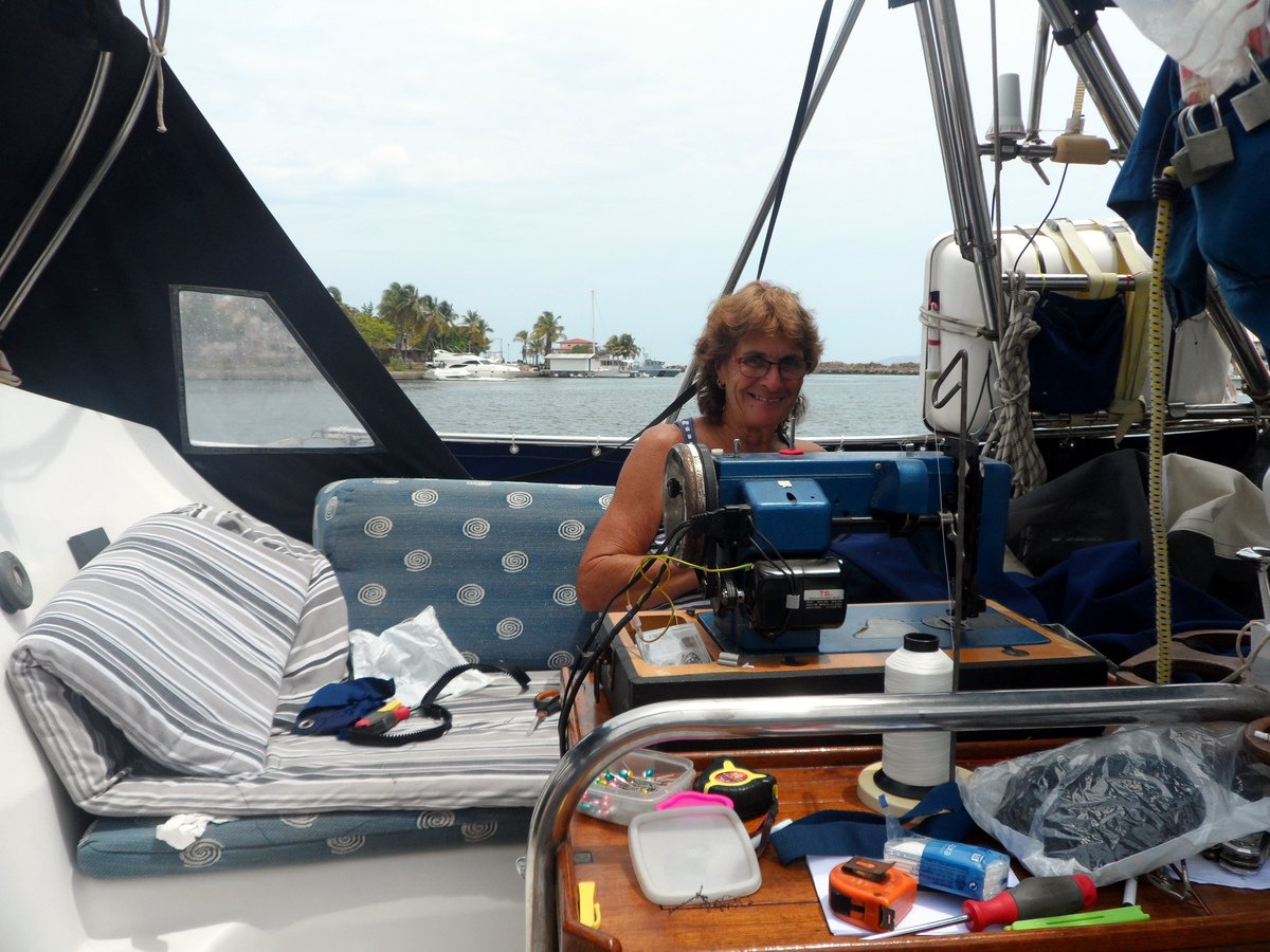 Christelle aboard Songerie, but they need a visa to enter Bonaire and
