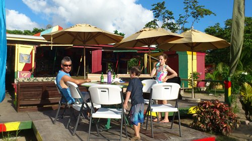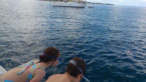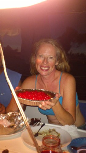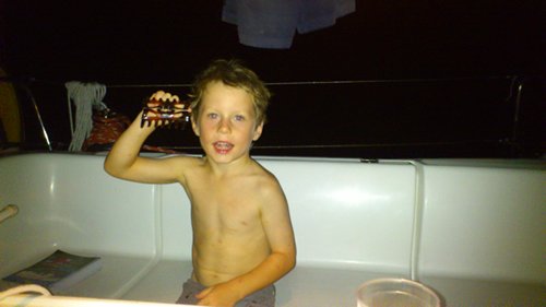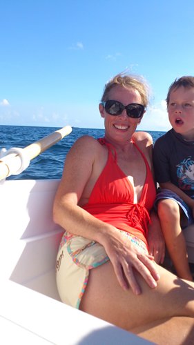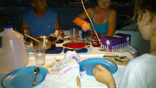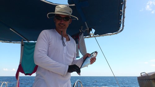 On the way to our "holiday spot. Just caught a big barracuda, decided to stop for a feast.