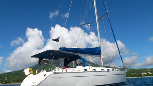 Sailed to Prickly Bay for repairs 11:59.8N 61:45.8W