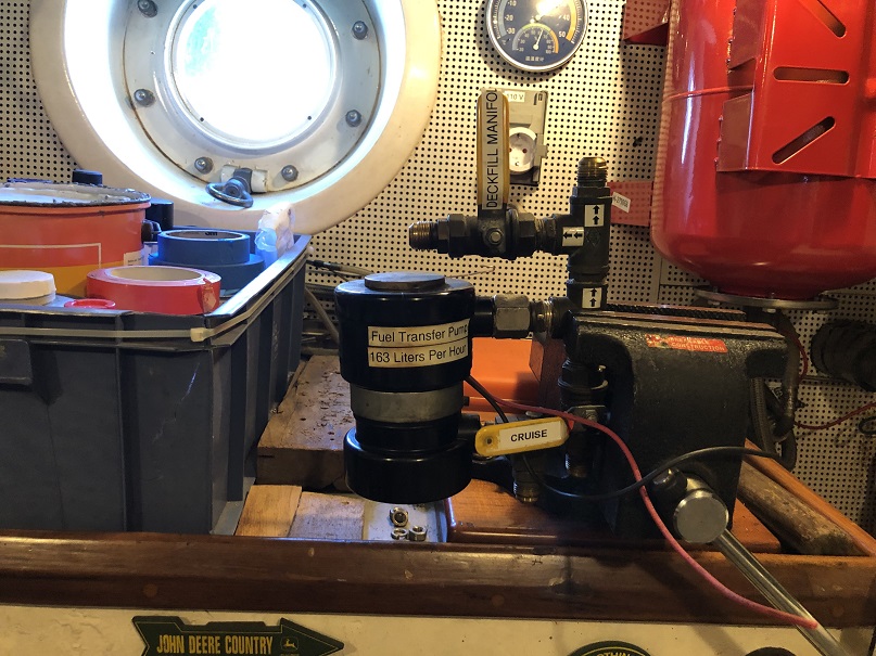 Once tied up in the marina I wanted to level Dora Mac with some fuel transfer. The fuel transfer pump then stopped working !