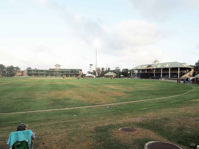 The beach at Castaways – one of a whole stack of wonderful stretches of sand around Antigua The following day we went to the Coolidge Cricket Ground near the airport to watch England Lions take on West Indies A in a fifty overs cricket match. The entry price of £5 a head got us seats in the shady grandstand between the two teams’ pavilions and with three beers for £3.50 it promised to be an enjoyable day out. West Indies batted first and whilst England Lions fielded well and bowled intelligently, Windies made a comfortable 256-8 in their allotted overs. England Lions started their reply at 6pm, just as the lights were coming on. They got off to a good start and for the first ten overs looked quite promising. But the Windies had some spin bowlers who wrapped the English in knots. Worse, they were unable to hit the ball into the gaps and seemed content to run singles at a walking pace, rather than look for a second run. No doubt they were petrified of being run out… England Lions is the ‘development’ side for people on the verge of the First XI, so perhaps they were more concerned to put on a good individual display to impress the selectors than turn in a strong team performance?