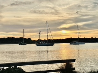 34:42.487N 076:39.834W We had a good time, did some shopping, found a gem of a little chandlery that had our engine water pump impeller in stock, managed to get everything we wanted, did laundry and had a good wander around. ![]() We love the health and safety standards in America 🤣😂. ![]() Friends of Tom and Sabrina’s, Lorrie and Jack who we had met briefly last year were in one of the marinas with access to a courtesy car and offered to take us shopping 🤩 this meant a trip to the Lidl in Moorehead city. Lorrie and Jack had never been to a Lidl and loved it! we also had a lovely evening in a local bar with them, as you can see its not warm but there was a nice fire going ![]() Waiting was frustrating though and when we woke and looked at the weather on the 19th it looked like as good a window in the near future to leave, wasn’t perfect but at the time GFS and ECM both said between one and two days motoring and the rest would be sailing and so we made the impulsive decision to go without prepared meals although I did have one of my previous prepared meals left and we went for it. A boat we had met - Tonks had come into the Anchorage in the night and they popped over to see us knowing that we were leaving, after their visit we went filled up with fuel and headed off. When we left the dock it was about 1045 in the morning - coincidentally we left Beaufort in 2019 on 19/11 ! As soon as we were out of the channel we were sailing immediately it was a bit bumpy getting out of the harbour but we had a good sail Got to the Gulfstream and it was a bit bumpy but actually as the depth of water dropped away the sea got better and despite the fact that for part of the crossing that night, we had 20 to 22 kn from the north where the seas really weren’t very bad at all while I imagined it would be a lot feistier than it was. I had been feeling a little bit anxious and apprehensive about the golf stream but at the end of the day had nothing to worry about. |
