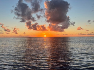 28:05.92N 068:30.36W At 12.00 EST Still motoring along in flat seas with 4-5 knots wind. Today’s forecast shows this continuing until tomorrow some time! A very clam Atlantic ocean and a lovely sunset. ![]() |