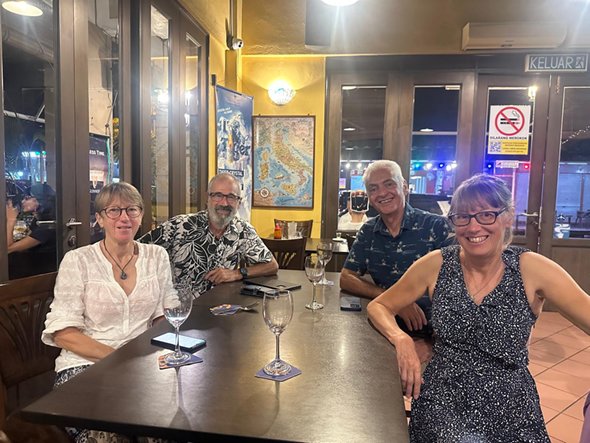 On another outing to Lumut we had a nice meal at the Italian restaurant with Maria and Allen from Jamala, our neighbours on the pontoon.