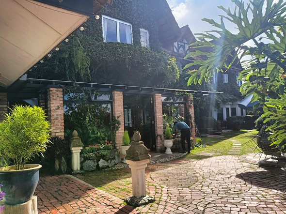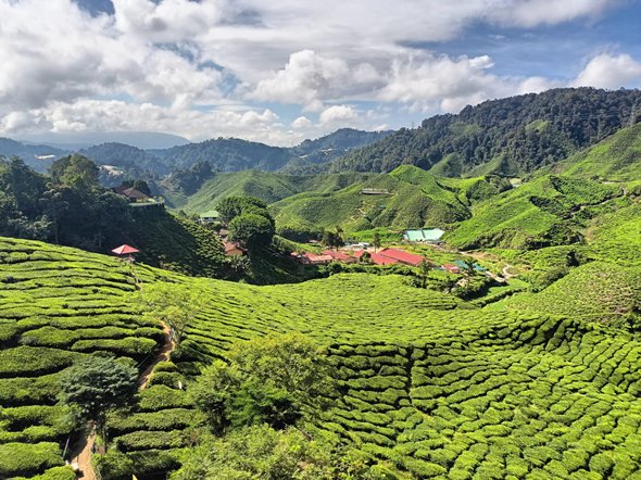 We needed to get visa extensions and this meant a trip to Ipoh, 2 hours by car, to visit the main immigration office so we hired a car for a week drove to Ipoh armed with paperwork prepared for us by Ruz in the marina office and after about 2 hours wait had extensions for two months. The reason for taking a car for a week was to get a break from the marina. We booked accommodation in the Cameron Highlands and drove up there from Ipoh. The Cameron Highlands are a hill station area where the expat Brits used to go to escape from the heat on the coast, it’s also an area of tea plantations and fruit and vegetable production. The tourist photos of the area show vast acreages of tea, what they fail to show are the equally vast areas of poly tunnels and the high-rise hotels and apartments. The drive up from Ipoh was depressing dusty roads, heavy traffic and poly tunnels covering the hillsides. Once at the top we drove through built up areas until we arrived at Tana Rata and our accommodation at Bala’s Holiday Chalet. This had been recommended by another cruiser, handy for the town and yet not high rise. It was an old schoolhouse which has been extended with terraces of ‘chalets’ up the hill side, pleasantly styled in keeping with the original building, of course we were at the top level. It was very quiet and quite comfortable. ![]()