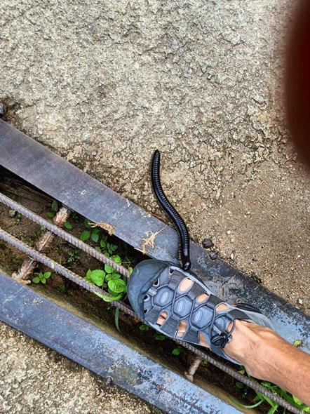 Wildlife around the chalets. One non-poisonous snake and a millipede, unfortunately the beautiful honey eater bird flew too fast to be photographed.