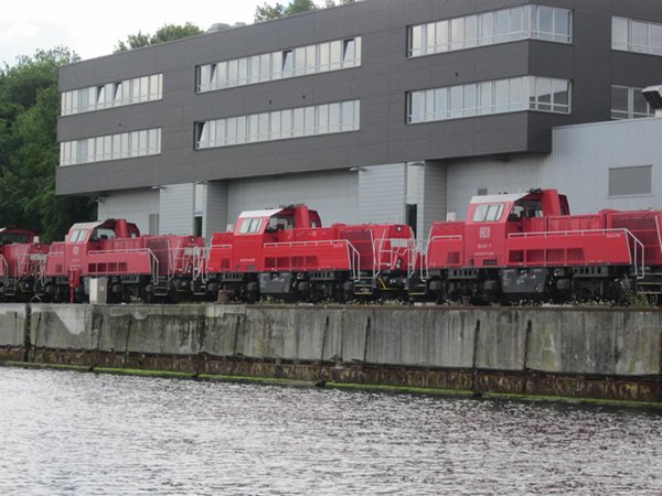 Three hours saw us approaching the locks at Holtenau, where Wylde Swan was still waiting, but as we got closer the lock gates opened and all the yachts streamed in, followed by us. Again the pontoons were really low – only just above the water – and this time there were no helpful Germans to take our lines, so I was forced to grit my teeth and jump. This is never nice when you are not sure of the nature of the surface you are jumping onto and to make matters worse they were not level, but had various humpy bits in, the wooden edges were rotting away, and the whole thing was bouncing up and down. However I landed without incident, although Ted had to rig the step so I could get back on again! This was where you have to pay the toll for using the canal so Ted went ashore to do that and before long we were all surging out into Kieler Hafen and motoring up to Kieler Forde.
