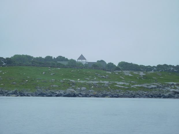 Our position 59:05.910N 05:36.507E Distance covered 8.3 Nm When we were in Stavanger I had read about Norway’s only preserved monastery from before the time of the Reformation and thought we might visit the island it was situated on. It was raining heavily in the morning and we delayed leaving Kvitsoy in the hopes it might dry up. In the event it stopped long enough for us to set off but started again and rained for most of the short passage to Finnsandbukta on Mosteroy.