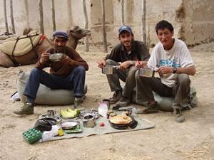 Regarding the crew?despite his drunken misdemeanour some weeks ago, Rosa Khun has developed into a great camel driver diligent in his duties, knowledgeable and with a ready cackle. Communicating is getting easier as my Uighur improves and the man seems content with a bellyful at night and a road to walk on the next day. He doesn’t ride horses! Korban on the other hand can be churlish and conveniently absent minded when he wants but he does as asked and seems to keep a level head in a crisis. I expect he抣l be with us for another week.