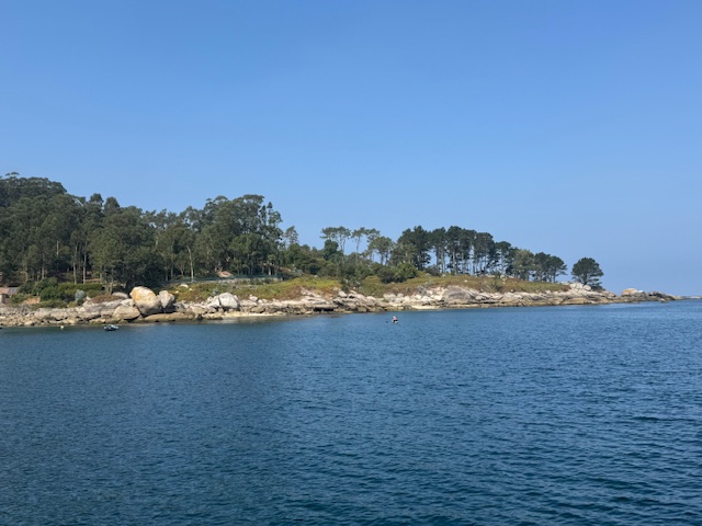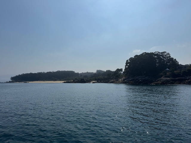 Managed to sail gently some of the way to Plays da Mourisca on the southern side of Ria Pontevedra, keeping a beedy eye open for Orca fins. As we approached the bay the mist started to come in.