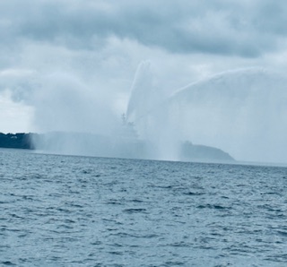 The search and rescue boat gave a fine water fountain display with its fire hoses as did another fireboat. Thought they were celebrating our arrival!