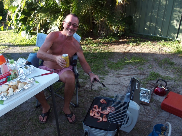 Xmas day dawned hot and bright - perfect for the beach. After traditional bacon sandwiches, with BBQ'd toast, we set off to the seaside. We then 'chucked a shrimp on the barbie, and opened a tinnie' for our starter before BBQ'd lamb shoulder and roast potatoes - we are getting quite good at using the BBQ for all kinds of things now - give us three months of it and we will be experts. We had a really nice day and in the evening caught up with friends and family at home who were just starting their day.