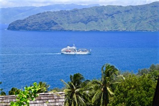 HIva Oa being the furthest island away from all civilisation with approx 2200 inhabitants has no production nor do they grow anything on the island. They are totally dependant of the ships coming in with any sort of merchandise. This ship, Anaaa, comes every 3rd Thursday. As you can tell it is half a cargo ship, half a passenger ship hosting 300 people. From far away it looks really funny! It is the big happening of the island and the parking is quick full of cars coming to pick up their marchandise, like this one with 6-7 wheelbarrows pilled up in the pick up! As there are no given facilities on the islands this ship has its own trucks to unload all the merchandise on the Marquesas as well as on the Tuamotu Islands. ![]() The bay of Atuona being very small the yachts being anchored to close to dock had to move. Luckily we could stay where we were. As soon as everything was unloaded we went to the shops knowing that people will be queuing for the fruits and the vegetables. In a few hours most of the fresh goods will be gone. We discovered that tomatoes are the most popular. You’re lucky if you manage to get a few! ![]() Take Off being provisioned with fruits and vegetables and decorated ready to celebrate Easter in a few days! ![]() |