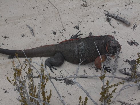 initially the only visiting yacht off of 'Iggy Beach'. Small reptiles could be