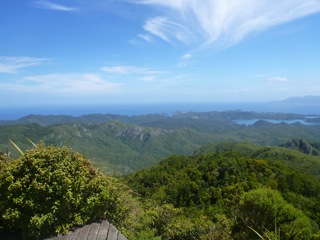 WALKING ON GREAT BARRIER ISLAND, NEW ZEALAND The sun came out!! So we did some walking starting with the first one when anchored in Tryphena Harbour Bay. We walked up to Mt. Wangaparapara which just took over an hour. The following day we headed around to Port Fitzroy bay, we had 30 knots blowing from the SW, just the jib up and off we set averaging 7 - 8 knots. Through a narrow pass into Port Fitzroy which was dead calm and very sheltered, quite a few fish and muscle farms around. We did a short two hour walk along Line W through the bush, just very beautiful. Back to the yacht still blowing quite hard across the bay but where we were anchored we were very sheltered. The next morning it was very warm and sunny. We packed a picnic lunch, on with the walking boots and headed off on a 6 hour hike up from sea level to Mt. Hobson/Hirakimata. Our first stop half way up was at one of the now disused Kauri Dams. Built in the 1920s, logs, estimated to be seven million feet of timber were slid into the dams, once loaded the dams were tripped causing a full blast of water to sweep the Kauri logs down stream to the sea. Quite a few steps, about 2,000 plus, nearer the top which was certainly a thigh burner, just had to keep thinking about getting fit for skiing. Once at the top the views were well worth it and we sat and had our lunch on a perfect, hot and sunny day with views that stretched for miles. We managed to sea a 'Kaka' a very rare grey parrott in a tree but by the time I got the camera focused it flew off. We also had a visit from some Pateke/brown teal ducks, which managed to crap all over our dingy. We have also seen Little Blue Penguins in the sea, very small and usually dive down as soon as the yacht goes anywhere near them so impossible to photograph. Some of the other yachties have seen Orca Whales but we have yet to encounter them. This morning we are all complaining about tight calf muscles especially when going down steps. We have just motored around to another bay within the Fitzroy Bay called Port Fitzroy where there is a very small community and little shop so we could buy more bread. See photos taken over the last two days below:- ![]() Donald Hughes hiking up the path ![]() Kauri trees ![]() The trig point on Mt. Wangaparapara covered by trees so no view ![]() View of the Coromandel Peninsular in the distance ![]() P1000835 ![]() Spider with a moth in it's larder ![]() Path through the forest ![]() Pateke Duck ![]() P1000858 ![]() Jonathan stretching for the long hike ![]() Aqualuna at anchor off Bushes's Beach in Port Fitzroy ![]() Flora and Fauna on the walk ![]() Jonathan and Gabbie with Kauri dam behind them ![]() Jonathan and Donald having a refreshing beer ![]() Half way to the top the Kaurie dam ![]() Still climbing ![]() Still looking up to the peaks ![]() One of the swing bridges ![]() Not there yet ![]() Jonathan still climbing ![]() Views are improving Fitzroy port and Bushes Beach in distance and small barrier island in distance ![]() Path in the forest ![]() Last lot of steps ![]() We have arrived at the top 621 metres above sea level the yacht is in the bay below. ![]() Views from Mt. Hobson/Hirakimata towards the Pacific ![]() P1000891 ![]() P1000892 ![]() Much deserved lunch at the tip ![]() P1000907 ![]() The forest ![]() The peak of Mount Hobson from the yacht just to the left of the yacht back stay |