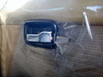 window handle between four windows. The seat belts holding