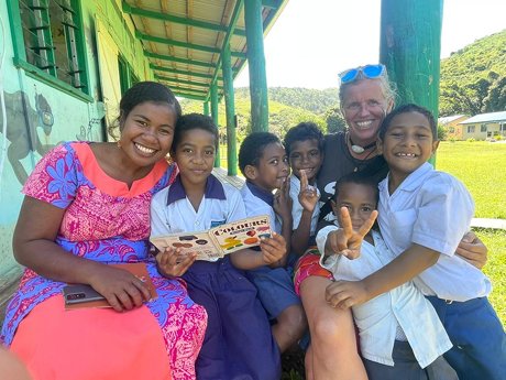 Mercredi 9 août 2023 Après le petit déjeuner un taxi boat vient chercher André et Floriane pour les amener sur l’île d’Ovalavu plus exactement à Levuka. Ils veulent encore profiter de quelques jours de tourisme avant de quitter les Fidji pour la Suisse. J‘ai eu beaucoup de plaisir à vous avoir tous les deux sur Brainwave et de naviguer dans les Fidji avec vous. Bravo pour les deux navigations de nuit, pour les délicieux petits plats de Floriane et la participation active d‘André dans les manœuvres. Bon retour en Suisse. L’après-midi à 16h00 le chef du village reçoit tous les équipages des bateaux de la baie pour nous souhaiter la bienvenue et participer à la cérémonie du kava. Avec lui nous visitons la pisciculture puis la léproserie avec certains compléments d’information par rapport à notre visite d‘hier. Après il nous invite dans la salle des fêtes pour la cérémonie du kava suivi de nombreuses danses entrecoupées de dégustation du délicieux breuvage. Tout d'abord, en tant que participant à une cérémonie de kava, vos hôtes attendent de vous que vous vous habilliez avec respect et modestie. Pas de lunettes de soleil ni de short ; les épaules et les jambes doivent être couvertes. La tradition veut que vous présentiez au chef du village une racine de kava, que vous pouvez trouver dans n'importe quel marché fidjien. Vous montrerez ainsi que vous comprenez vraiment la culture fidjienne et l'importance de la cérémonie du kava. La cérémonie du kava se déroule autour du Kava tanoa (bol) commun. Les invités s'assoient en cercle autour du bol, qui est placé devant le chef ou devant ceux qui préparent la boisson. La cérémonie commence par la production du kava. La plante est pilée et la pulpe est placée dans un sac en tissu et mélangée à de l'eau. Il en résulte un liquide de couleur brunâtre - l'or du kava. Il est ensuite filtré et prêt à être bu. Le chef du village ou ces aides vous offriront du kava à marée haute (tasse entière) ou à marée basse (demi-tasse). Lorsqu'on vous présente le kava, applaudissez une fois et criez "Bula" (bonjour en fidjien). Buvez le kava d'un trait si possible, applaudissez encore trois fois et terminez par le mot Maca (prononcé "Ma-tha"). Enfin, une fois le kava terminé, vous ressentirez un délicieux sentiment de sérénité et de calme, avec un léger engourdissement autour de la bouche, des lèvres et de la langue. Une cérémonie du kava c’est un véritable indicateur de la culture fidjienne. C'est pourquoi les Fidjiens servent souvent du kava pour régler une dispute ou pour faire la paix entre les villageois et tout simplement faire la fête. Après les denses, les enfants tourbillonnent autour de nous avec tellement de bonheur, parlant un petit peu l‘anglais et voulant tout savoir sur nous. La nuit tombée nous retournons sur Brainwave non sans avoir promis aux enfants une fusée 🧨. 20 enfants étaient sur le ponton attendant la fusée (il faut bien écouter la vidéo avec les enfants qui crient au loin). Bon la fusée est arrivée pas dans la mer mais sur la place du village 😇 d’où l’inquiétude de Marlies, mais il n’y a eu aucun blessé. Jeudi 10 août 2023 Hier nous avions promis aux enfants de leur rendre une visite à leur école. Après une marche de 60 minutes sur le chemin peu entretenu (à l’époque de la léproserie c’était la route qui reliait l’hôpital au village ; il y avait même des voitures qui l’utilisait) nous arrivons à l’école. Il est midi et les enfants en uniforme s’alignent en respectant la distance d’un bras puis mettent les mains dans le dos et écoutent le directeur de l’école leur souhaiter bon appétit. Durant la pause de midi, je m’entretiens avec le directeur qui m’explique le fonctionnement de l’école, le nombre de classes et d’enfants, le thème des cours. Un vieil ordinateur trône sur une table et son plus cher vœu est d’avoir deux ordinateurs pour les enfants !!! Je vais m’en occuper … A 13h00 la vingtaine d’enfants arrivent en courant. Avant d’aller en classe les 20 écoliers, alignés se lavent les dents le visage et les mains sous les ordres du chef de classe. Nous visitons toutes les classes. Je montre sur une carte mon tour du monde à la voile et toutes les îles visitées aux Fidji. Les enfants posent plein de questions dans un anglais impeccable (leur deuxième langue nationale). Ils sont appliqués sur leur pupitre, écrivent très bien. Quand on leur demande ce qu’ils veulent faire dans la vie : « aucune idée, rien faire ». Le directeur de l’école, qui en même temps donne des cours restera dans cette école pour un mandat de 5 ans. Il est là avec son épouse dans une petite maison de fonction, rentre dans son vrai chez lui lors des vacances scolaires. La maîtresse, des petits (célibataire, elle a un contrat de 3 ans, sa maisonnette de fonction, rentre chez elle à Suva uniquement pour les vacances avait tout de suite un petit béguin pour Mathieu), nous propose une noix de coco qu’un jeune de 8 ans va chercher sur un cocotier puis avec une machette la prépare. Je me rappelle qu’à son âge j’avais l’interdiction de prendre un couteau ou une hache afin de ne pas me blesser ! Encore une chose concernant l’école : tous les matins à 07h30 et les soirs à 17h30 les enfants s’alignent devant le drapeau fidjien, le montent et le descendent. Malheureusement je n’ai pas eu la chance d’y participer. Comme m’a dit le directeur, l’éducation stricte fait partie de la vie et si un enfant désobéit il sera réprimandé avec une baguette sur les doigts. Nous allons au village qui est à deux pas de l’école et nous pouvons que constater la pauvreté des gens. Retour sur Brainwave par le petit chemin. Ce contact avec ces enfants était merveilleux et comme ils étaient heureux mais il ne faut pas fermer les yeux pour autant. Quelle chance d’habiter en Suisse.