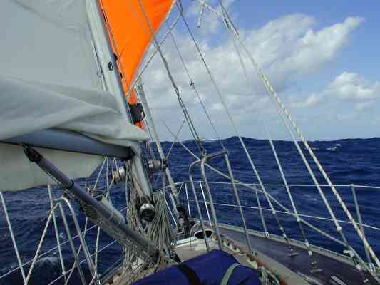 Calema settled down with the wind 70-80 degrees off the bow. Very little water