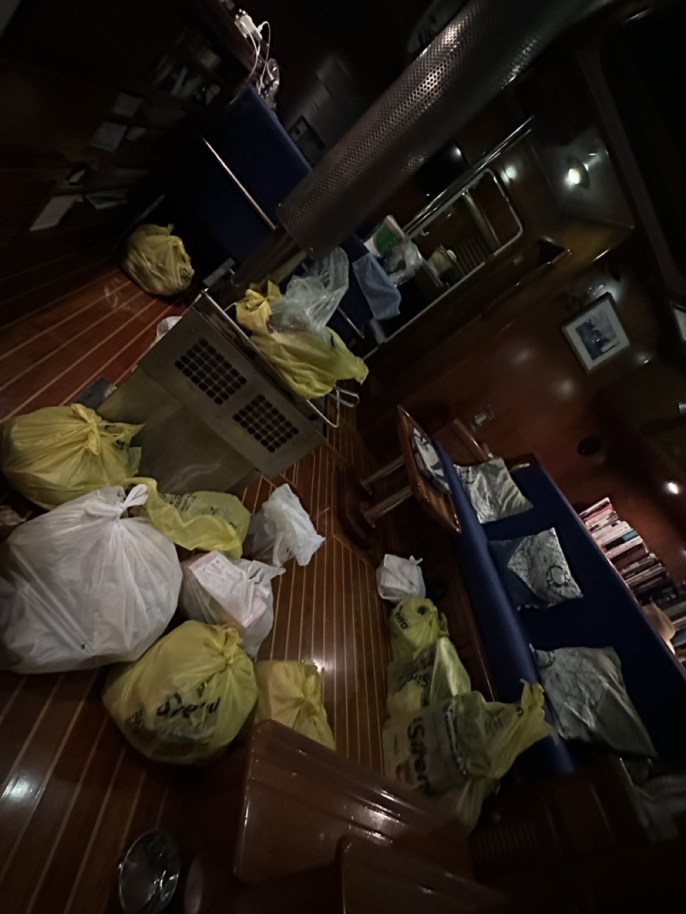 Once back on the boat we spent some more hours carrying goods,packing and Mercedes vacuum packing/freezing food.