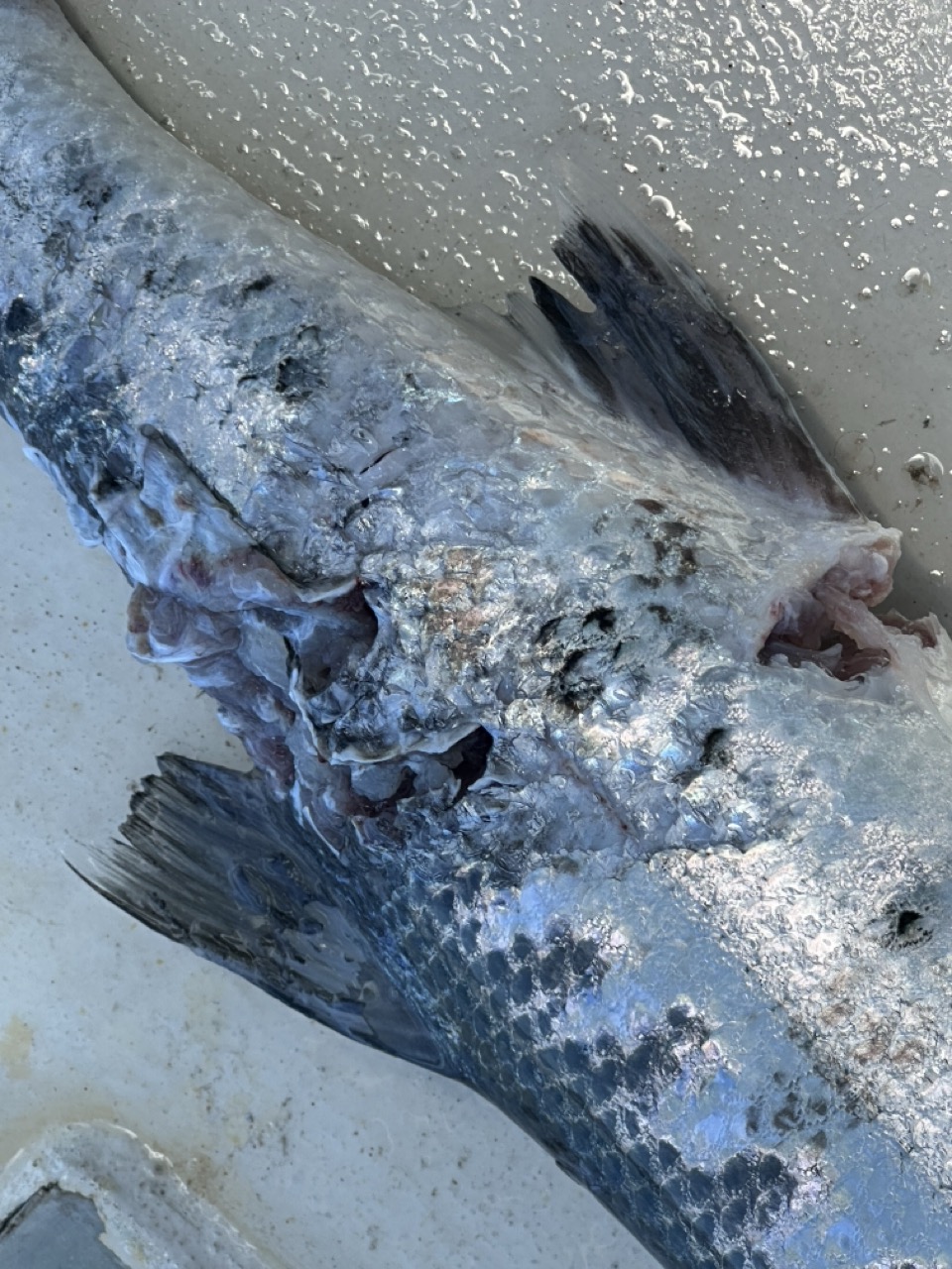 This one already had a big bite across it’s body (shark ?) and although thrown back into the sea I doubt it survived.