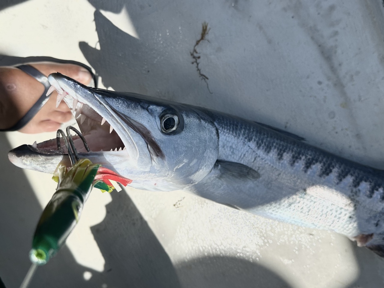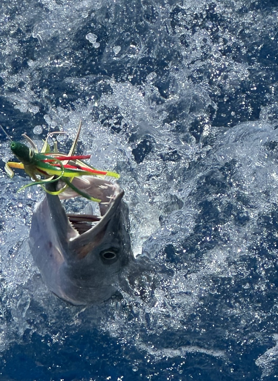 The third time the gear started spinning we hauled out a Barracuda. Since the risk of ciguatera (neurotoxin) is high in Barracudas we decided not to take the risk of eating.