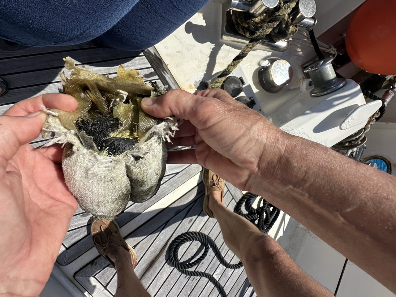 Mooring lines need to be checked though. As seen from the picture chafe can make ropes unreliable and in our case we needed to create a bosuns knot to moor with healthy rope.