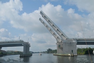 Finally they opened one side of the bridge and we passed through the 2 bridges at 0715am.![]() Approaching the 2 bridges ![]() Finally through and on our way north again. ![]() Boat lifts continue to be very common ![]() The Port of West Palm beach. We had to slow while a tug pushed a container ship into the dock. ![]() The fixed bridges on the ICW are 65ft. Our mast height is around 58ft but it’s always a little disconcerting as we go under. ![]() and sometimes as we go through there doesn’t seem too much sideways clearance either. ![]() ![]() The high rises continue... ![]() ...along with the boat wakes. Some drivers are very considerate and slow down, while others go hooning past causing us to 'rock & roll’ and dive into the galley to save the coffee pot on the stove. ![]() Tugs pushing barges are not uncommon and require a fair piece of the channel to negotiate. They all moved over to let us overtake. ![]() The further north we moved the more wildlife we started to see. It was always nice to see Osprey. This was an adult bird with a chick who had obviously set up nest on one of the supplied nesting platforms. ![]() Pelicans are also common ![]() As are fishermen sitting under bridges. ![]() The manicured lawns in this stretch of the ICW included manicured and hedged mangroves ….. only in America. ![]() The bridges continued. 14 between West Palm Beach and Stuart (through 11 and under 3) ![]() We entered the St Lucie Inlet from the ICW and headed up river toward Stuart. We were pushing against the current but had entered a fairly wide stretch when the Port engine spluttered to a stop. The Starboard was still running so we slowed and John went and did his bit which entailed disconnecting the fuel line, blowing as hard as he can to blow the blockage back into the tank, bleeding the line and then reconnecting and keeping fingers crossed when the engine is started again. All good thank heavens and we continued to motor toward our destination, the mooring field at Sunset Bay Marina (City Municipal). Our last 3 bridges - under the first, through the second which is a railway bridge and is only closed when there is a train and through the third which opens upon request. The current was raging through. ![]() The mooring field at Stuart ![]() Every afternoon we had a storm or 2. The first one we encountered here we registered winds over 38Kts. ![]() A bit wild and woolly…. ![]() ![]() But the clears kept us dry. ![]() The Marina facilities are very good. Fully air conditioned, nice and bright restrooms, laundry and Captains lounge with TV, book swap etc. ![]() Fairly large marina but the water quality here is not good. The water comes from Lake Okeechobee and is full of fertilisers etc. About 2 weeks after we left a green algal bloom occurred - not good. The major reason for coming to Stuart was to get a quote from Mack Sails for a new mainsail, new electronics and replacement of rigging. Colin Mack came to the boat, took all the details, inspected the rigging and sail, which he ripped on a seam, telling us it was time for a new one. The material should not have let go like that if it was in good condition. The quote came 2 days later. We have ordered a new mainsail and will return later this year to have the mast pulled, rigging replaced and new chart plotter, radar, radio and AIS fitted. It never seems to end. Stuart is a quiet town, well it was when we were there. There is a River Walk which is a boardwalk going from the Marina to town following the rivers edge. ![]() It goes under the railway and the fixed bridges we passed in the boat. ![]() Always interesting to see bridges from a different angle ![]() Walkway extends under the high bridge ![]() Stuart - centre of town. Not much happening. We stayed in Stuart for 3 days |