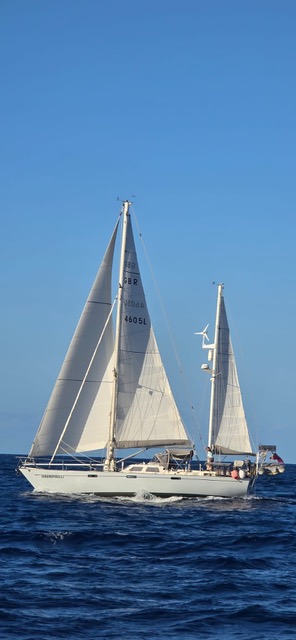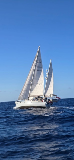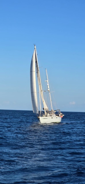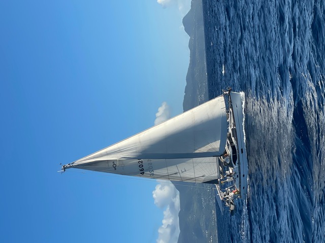 They started just ahead of us as we put main up before lifting the anchor. Soon we were both sailing, us on full main and Genoa while they were reefed, as we went by we shouted to go full sails 🤩, then we had to add the mizzen to stay ahead, it gives is that little bit extra and so we managed to stay ahead the rest of the way? Good old Innamorata had a fantastic sail and Martin took some great pictures, of course we took some of them as well.