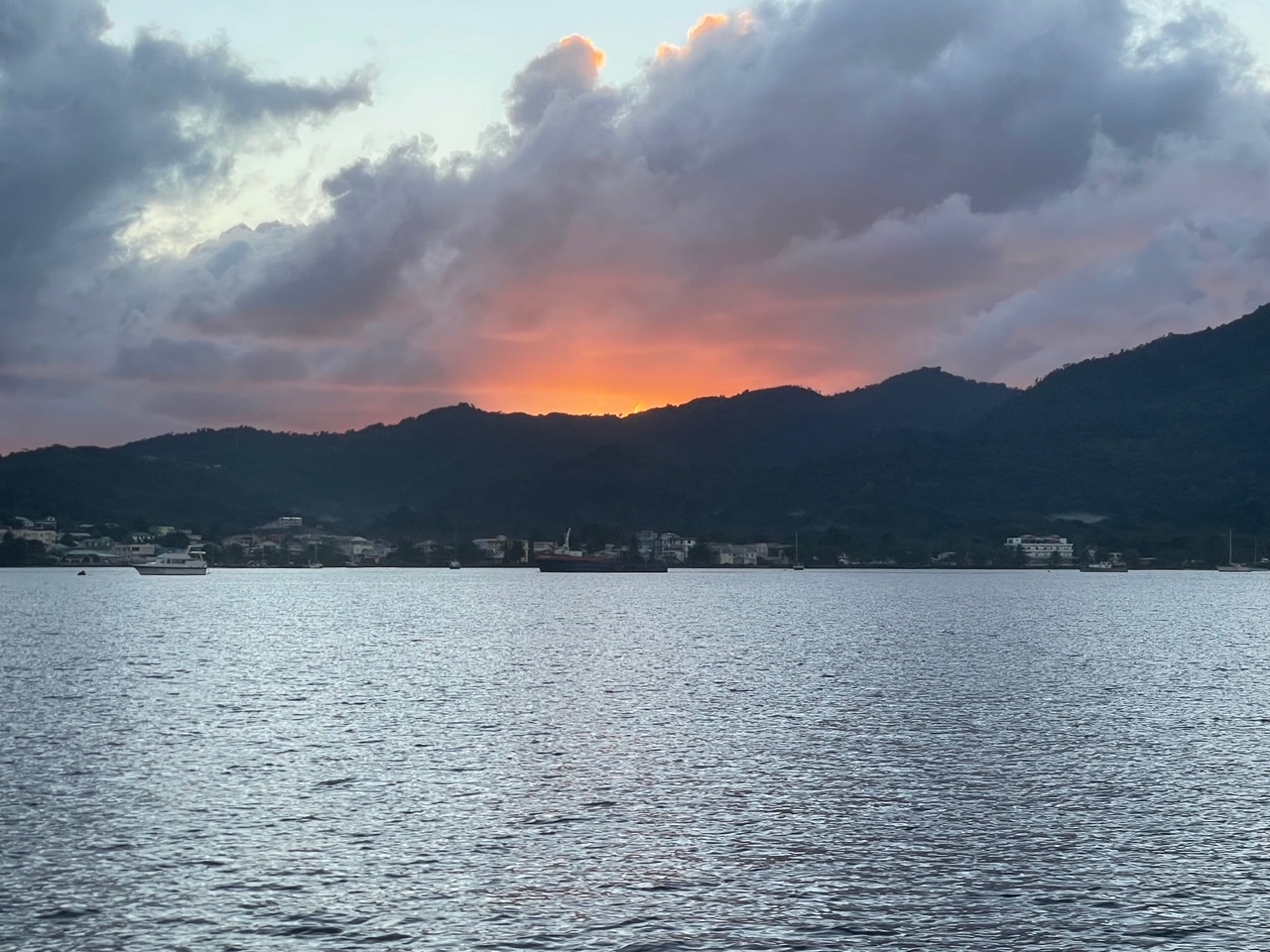 We were soon sailing although the wind was fickle, once we got to the south of the island and out of its shadow and land influence we were flying along close hauled, soon it was time to reef the sails for a more comfortable sail.We had a fast windward sail sometimes doing 8+ knots reefed as we headed to Martinique, the sea was nothing like yesterdays nice flat state when we sailed from Guadeloupe so if was a salty bash but reasonably enjoyable once we settled into the swing of it. We made good time and were anchored at Sainte Pierre before 4pm!