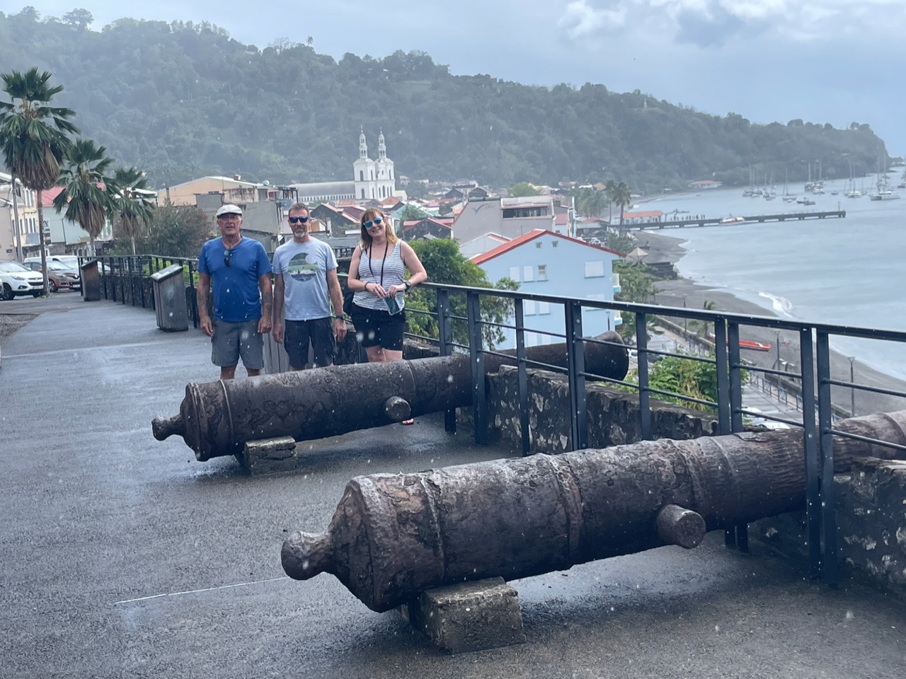 14:43.929N 061:10.87W We set off with reefed Genoa, as always the wind was gusting across the bay - we had 20-25knots and were flying along when we saw a massive pod of dolphins heading across our bow, Clare, Terry and me scrambled to the bow and I got some video footage of them all leaping as they went past obviously on a serious mission, sadly no photos! We were charmed and a little later we had a shore visit from a pod. ![]() ![]() We arrived in St Pierre and anchored by midday, once settled we decided to go for a snorkel on the wrecks we dived last time. Terry and Clare were treated to clear water and lots of fish. The following day we waited until a few showers had passed before we headed ashore, went for a coffee before wandering up to the museum which is dedicated to the volcanic eruption, we haven’t been before , we opted to listen to the information and though small it was interesting, they still do not know how many people died, then the volcano began to show signs of increased activity the officials were telling residents not to panic and it was safe, most stayed and some of those in surrounding areas even headed to the perceived safety of St Pierre! A few didn’t stay and headed away and ultimately survived, in St Pierre there was one survivor - a prisoner - however the museum raised the question was he really a survivor or someone who was there looting after the event who pretended he had survived in the prison?? only 2 other people on the outskirts of St Pierre survived and possible as many as 30,000 died which was 1/6 of the islands population. ![]() |
