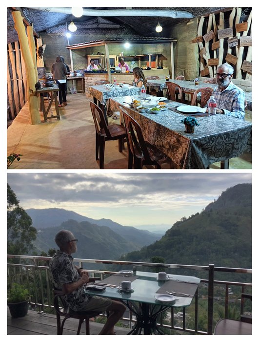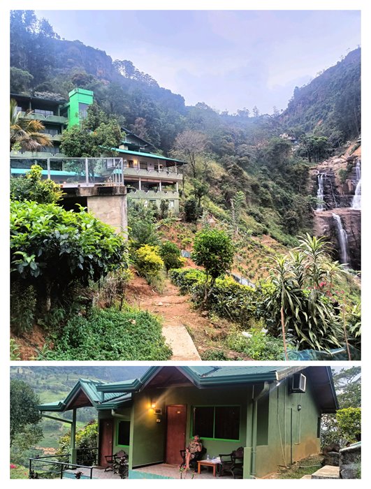 Our chalet at the Ramboda Falls hotel and the view from the front patio