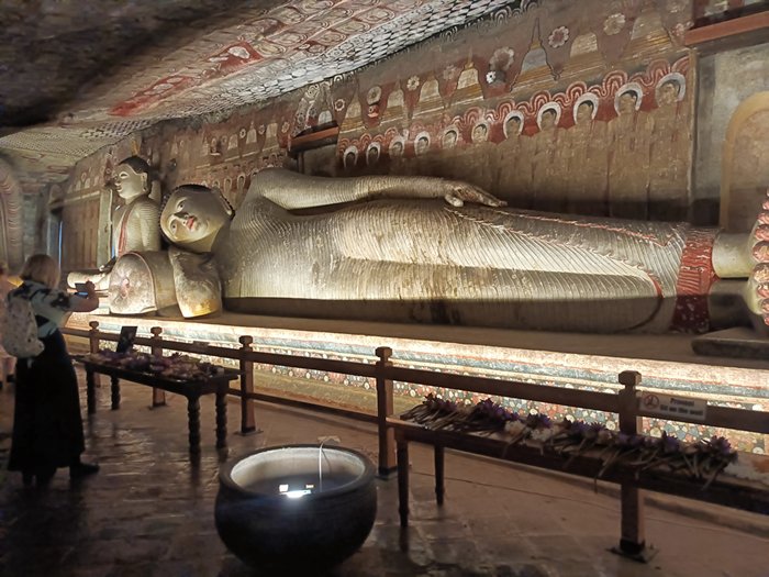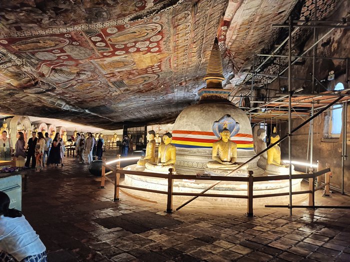 The cave temple, where there are five carved chambers with rock painting and Bhudda statues.